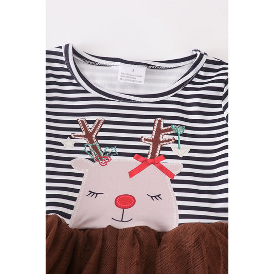 Reindeer Striped Tutu Dress