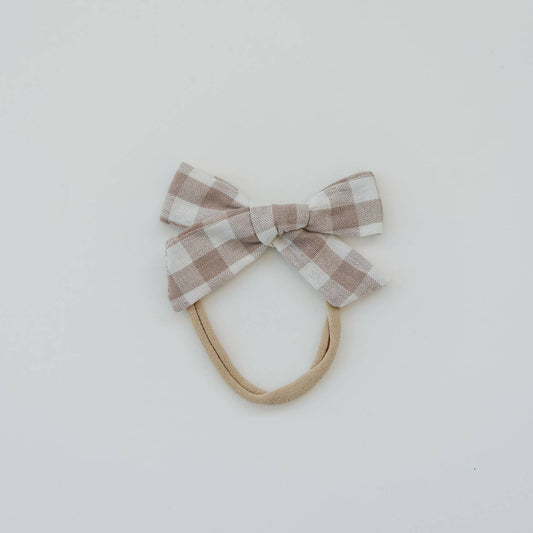 Skinny Gingham Cotton Bow Headband - Blush or Neutral