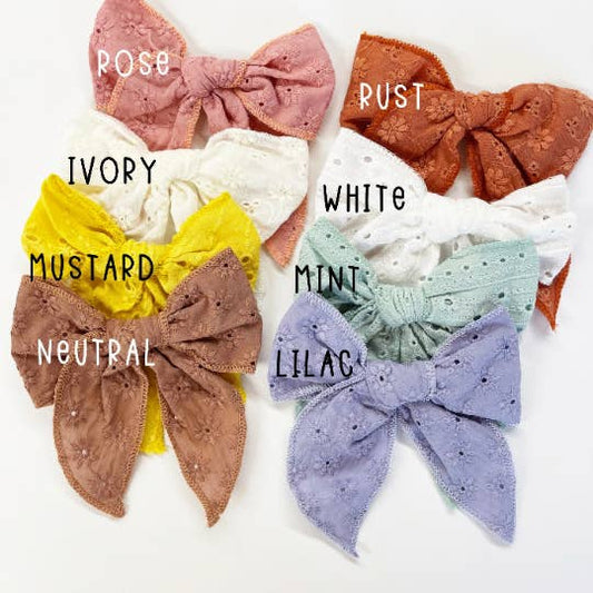 Eyelet Cotton Linen Bows - Multiple Colors Available