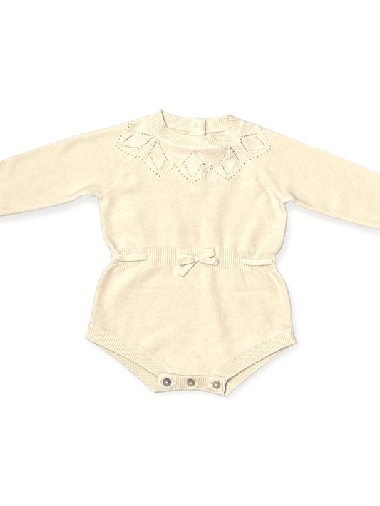Cream Milan Floral Embroidered Ruffle Knit Baby Jumpsuit