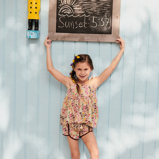 Pink Chicken Azure Posey Block Print Girls Theodore Short