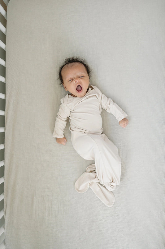 Makemake Organics - Organic Cotton Kimono Knotted Sleep Gown & Top Knot Hat - Sunshine