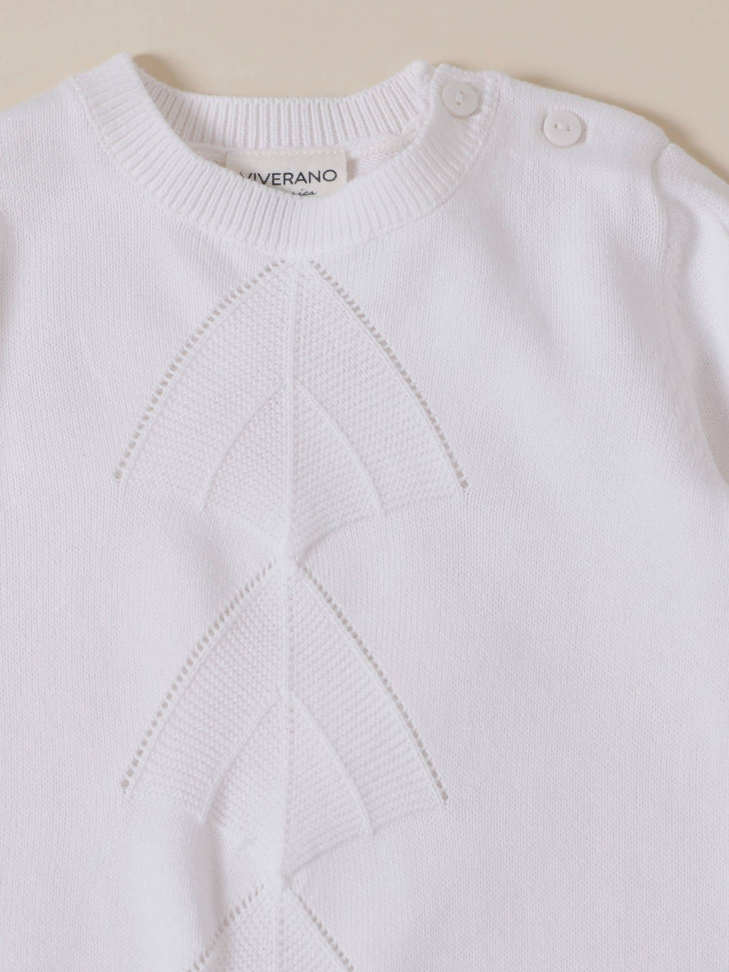 Organic cotton knitted baby sleep gown & bonnet hat set in pure Dove White color.