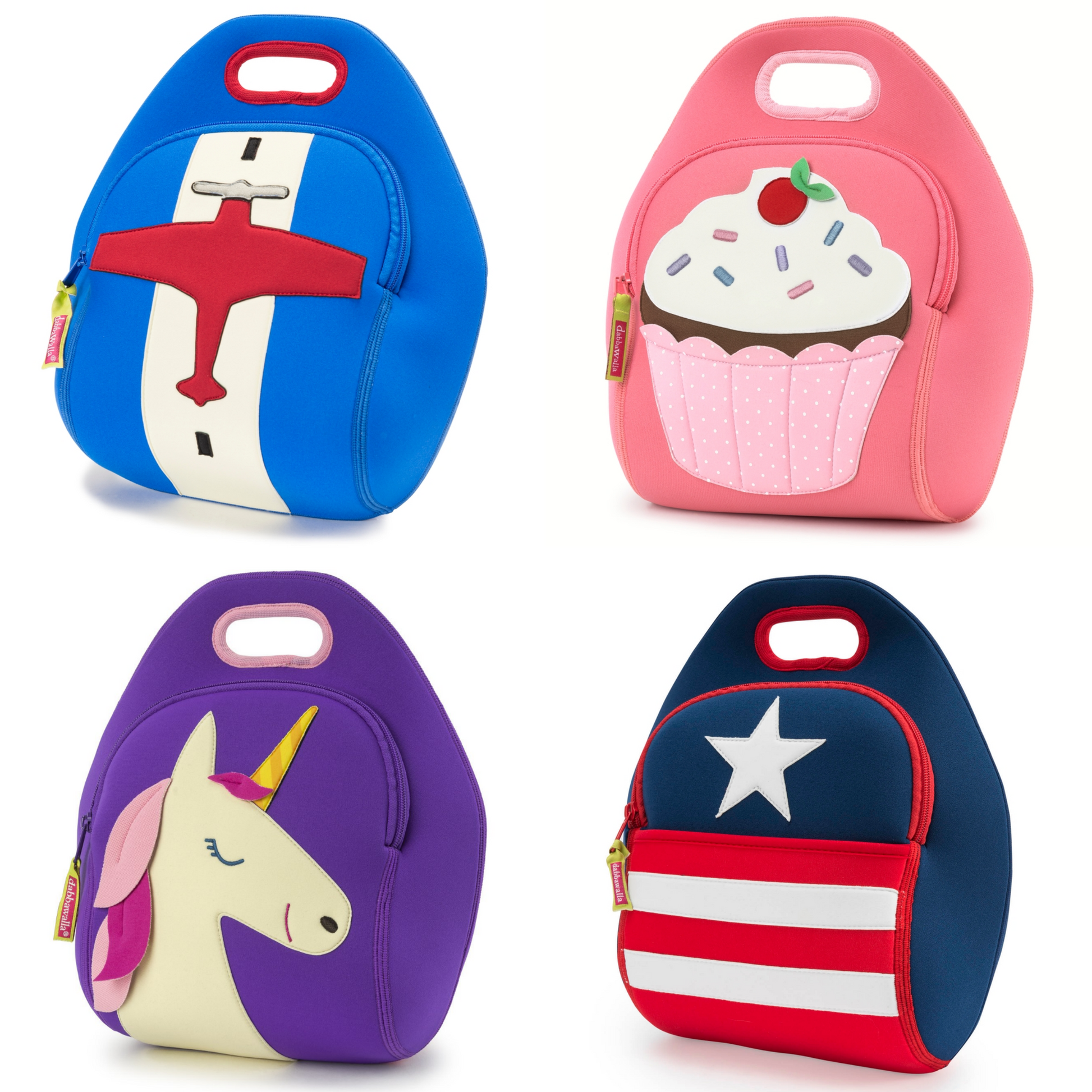Lunch Bag - Airplane, Cupcake, Stars & Stripes or Unicorn