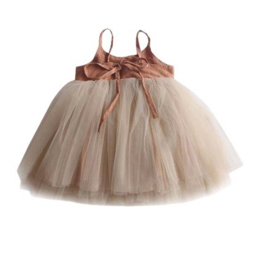 Adorable organic linen/cotton tulle dress with adjustable tie back straps.