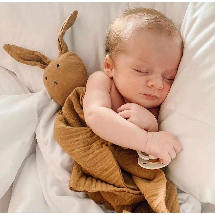 Adorable earth-toned bunny loves made from super soft cotton, perfect for cuddling.