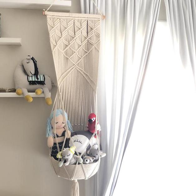Our beautiful new Macrame Toy Hanging Basket adds the perfect Boho flair to your child's room. And, even better: it doubles as both dreamy décor and a practical organizational tool! The basket is a fun place to show off your child's favorite toys and books—and helps keep the nursery or playroom clutter free when "clean-up time" is called.