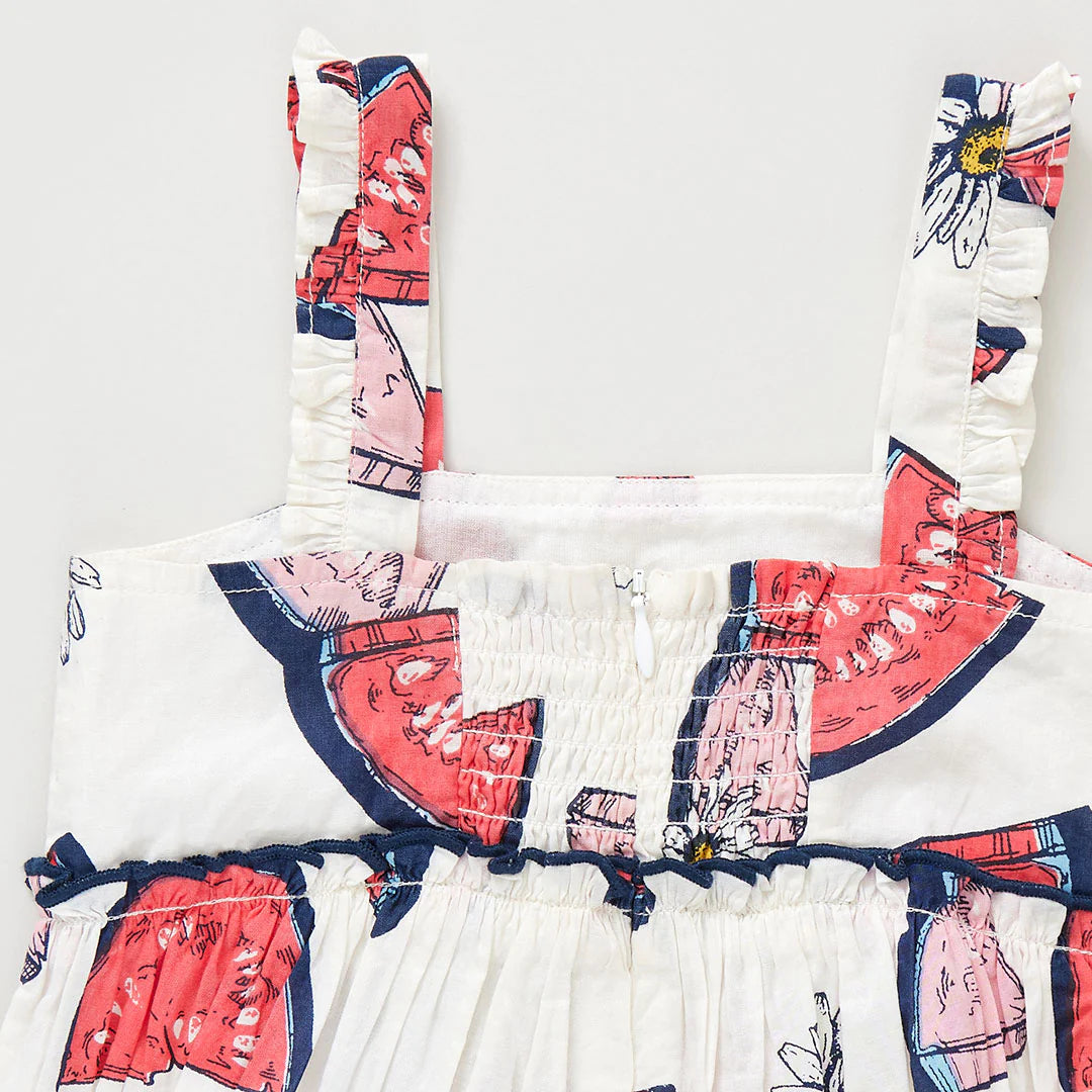 Summer’s Sweetest Treat! Scattered wedges of juicy watermelon sweeten a crisp white ground on our Baby Sierra Bubble.